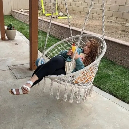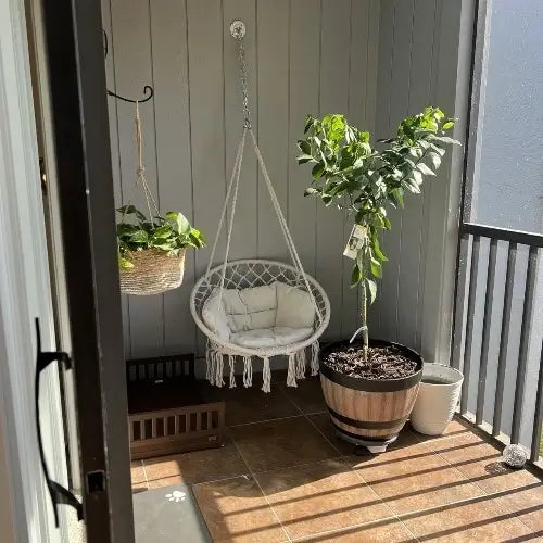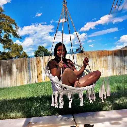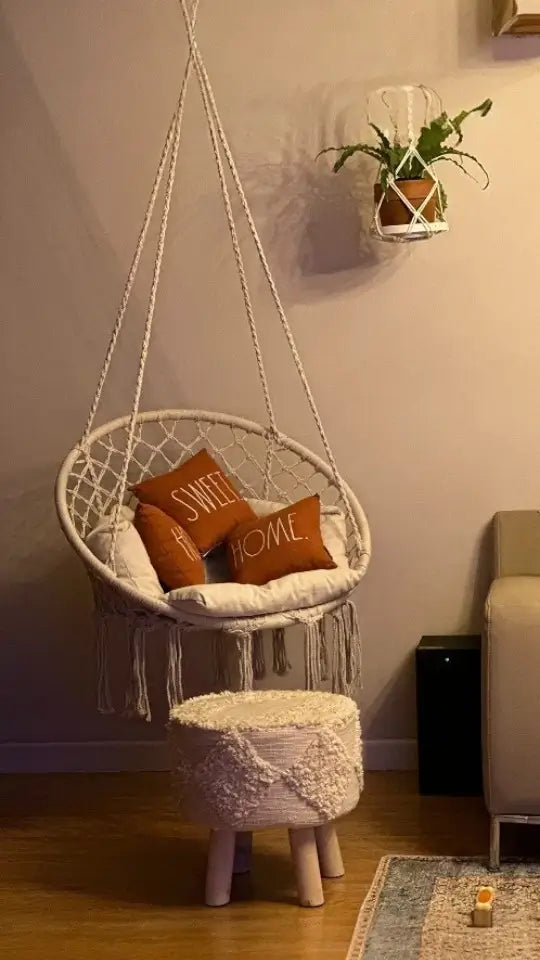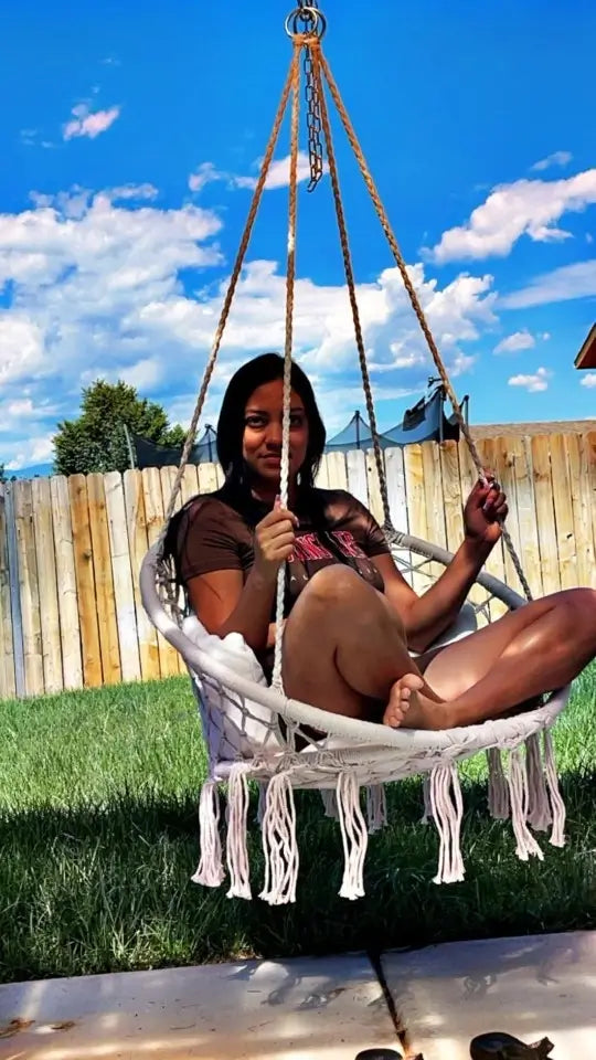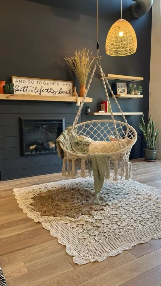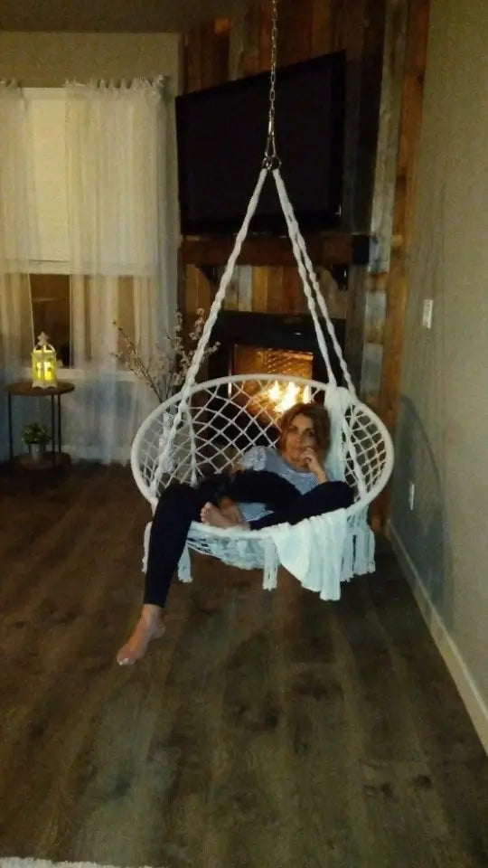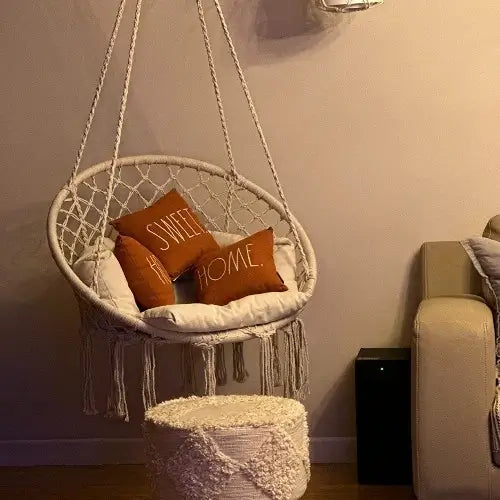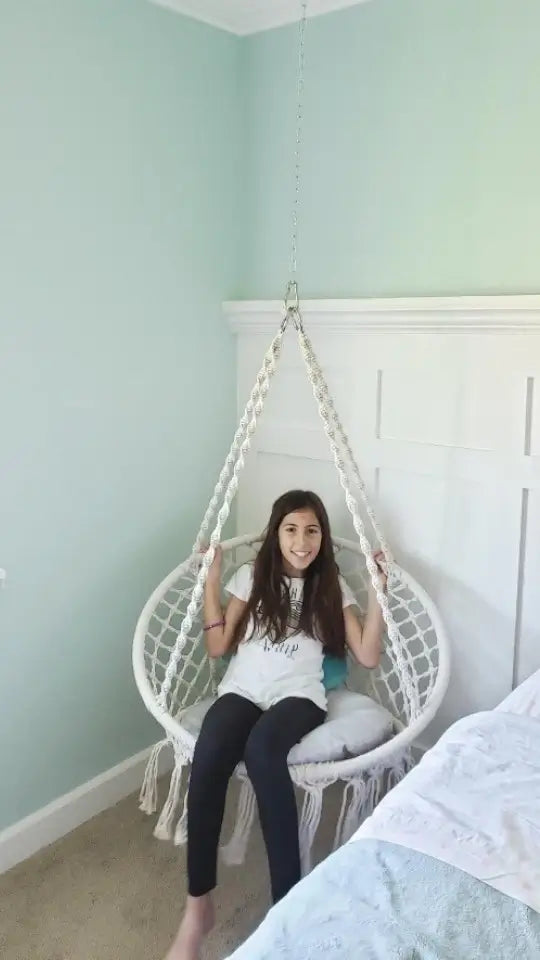 Do I need to hire someone? You'll be swinging in 10 minutes - seriously. Ropes come pre-knotted (no complex tying), and we include all hanging hardware. Just find your ceiling joist, screw in the hook, and hang. No special tools, no helper needed, no instruction manual confusion. If you can hang a picture frame, you can install this chair solo.