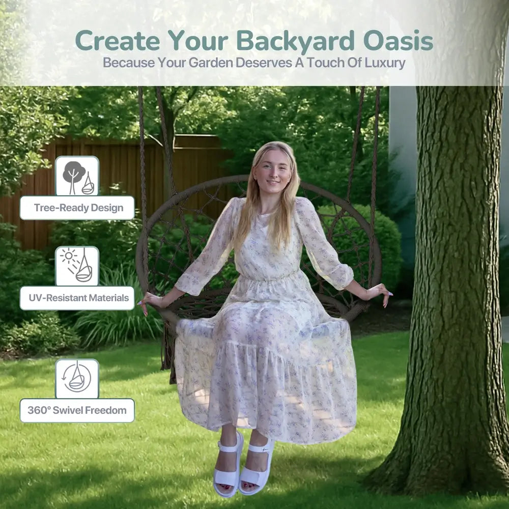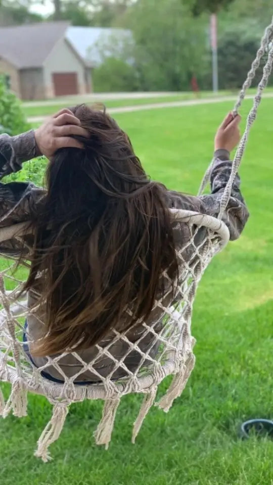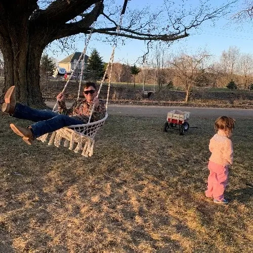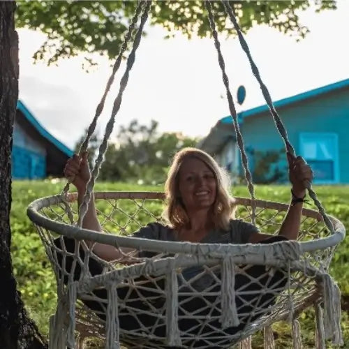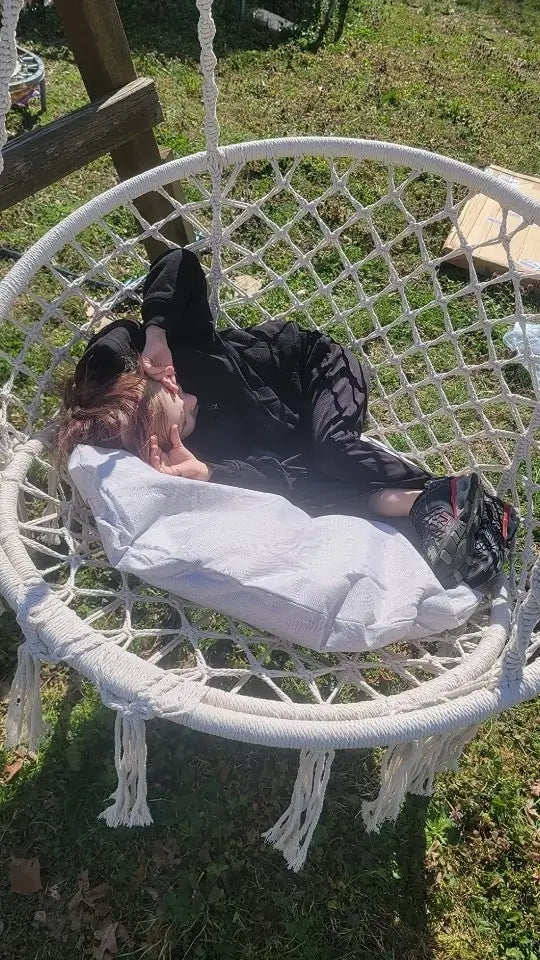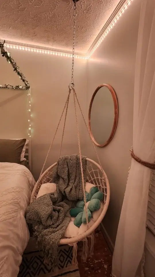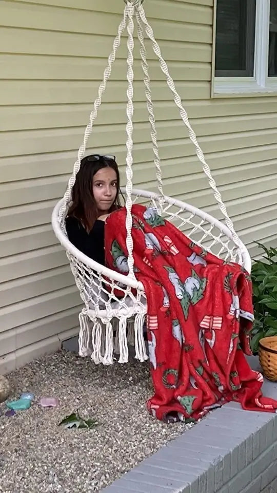 Do I need to hire someone? You'll be swinging in 10 minutes - seriously. Ropes come pre-knotted (no complex tying), and we include all hanging hardware. Just find your ceiling joist, screw in the hook, and hang. No special tools, no helper needed, no instruction manual confusion. If you can hang a picture frame, you can install this chair solo.