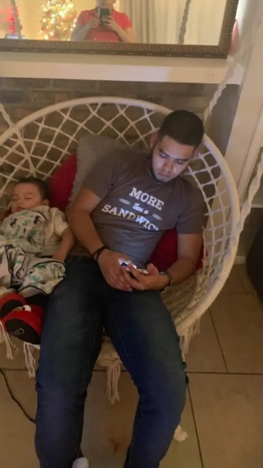 Holds me AND my toddler for bedtime stories! We swing together every night now. Our special bonding spot.