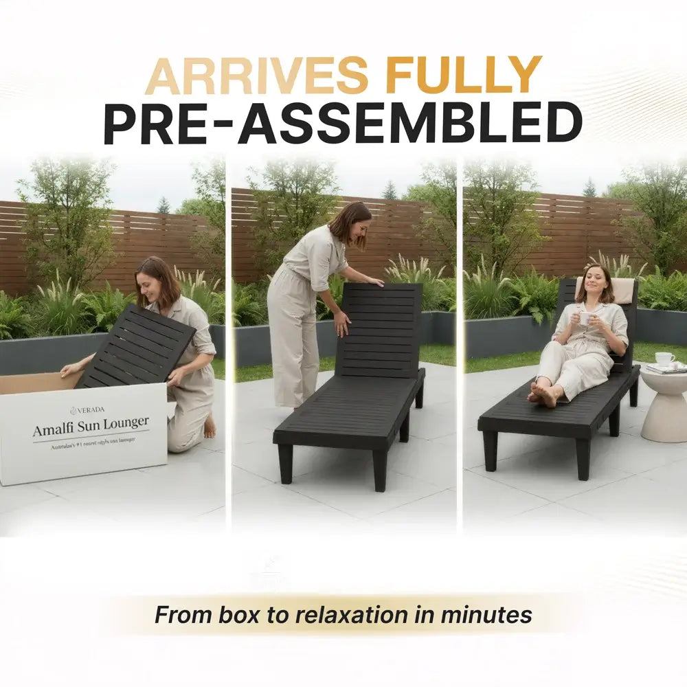 While other loungers cut corners with metal frames and basic plastic, Amalfi delivers 5000+ hours UV testing, zero-rust engineering, and 5-year Australian warranty.