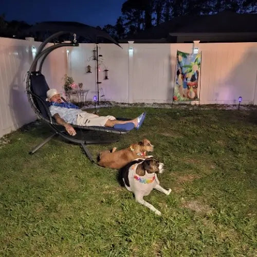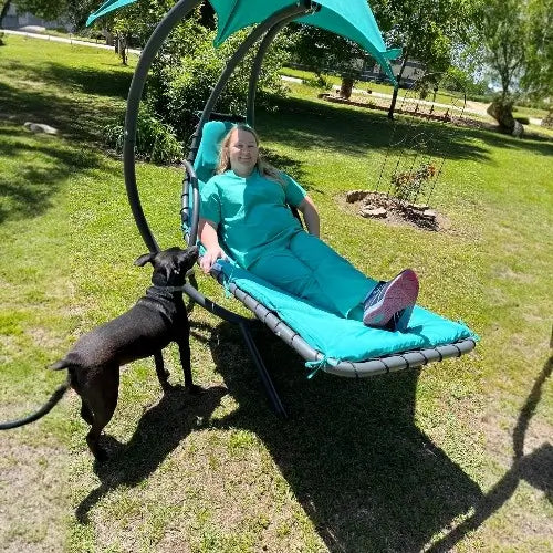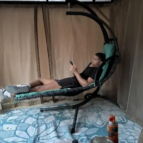 Haven't sat inside for weeks! This chair literally changed how I use my backyard. Morning coffee just hits different floating.