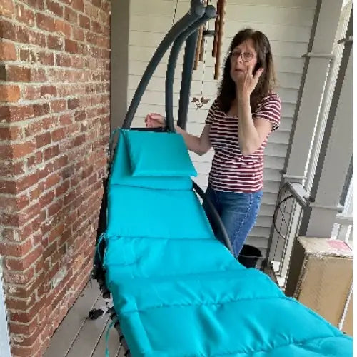 Its a lounge chair, its a hammock, its a swing. Have you ever watched an infant snooze in one of those rocker swings and wished you could have one? This is it. So comfy! A little challenging to put together solo but manageable. Took a five foot tall woman about three hours total. Super simple but the frame is very solidly constructed so it took some effort to get the parts aligned with only one set of handsbut it was easy to follow instructions and do-able. It takes up a bigger footprint than expected but again super sturdy and sooooo comfy!